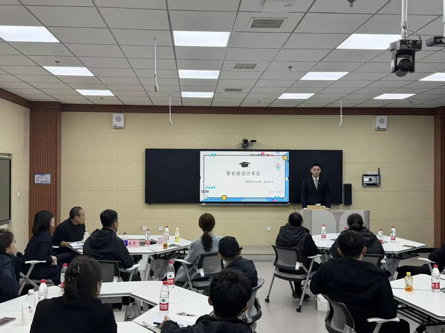 会上,牛艺、陆鹏程首先代表学院对家长的参会表示热烈欢迎,随后围绕“学生职业发展与竞争力提升”展开核心分享:一方面聚焦家长最关切的职业方向,清晰解读行业就业趋势;另一方面针对“如何提升就业竞争力”这一关键问题,明确指出“升学是民办院校学生实现高质量就业的关键路径”,为家校达成核心共识奠定基础,同时也提及留学深造、征兵入伍等多元发展选择,满足不同家庭的规划需求。