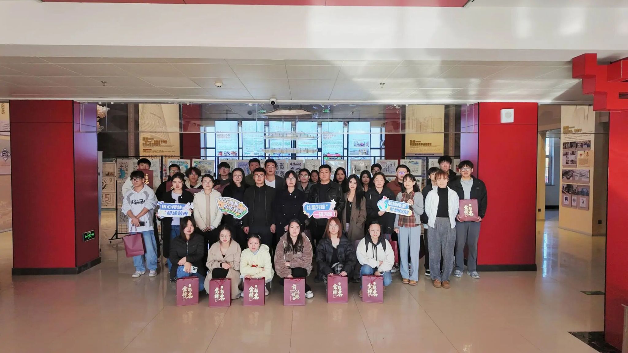 学院还精心准备了寓意深远的“考研助力礼包”。其中,文具包寓意“笔定乾坤”,旺仔牛奶寄托福“旺”相伴的美好祝愿,橙子象征“橙”功上岸,柿子则承载好“柿”发生的真诚期盼。每一份礼物都凝聚着学院对学子们的深切关怀与温暖祝福。活动尾声,师生共同参观了优秀校友升学风采展。展板清晰呈现了往届学子进入国内外知名学府与优秀单位的成长路径,以榜样的真实力量激发后来者的奋斗决心,坚定其前行步伐。