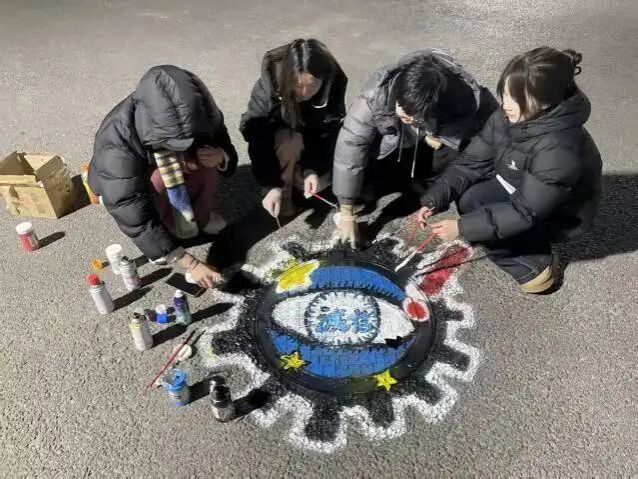 活动现场气氛热烈,同学们分组协作,热烈交流,在艺术创作中深化对诚信内涵的认同。一幅幅主题鲜明、富有感染力的井盖涂鸦逐步呈现,成为校园中流动的“诚信课堂”。该活动通过视觉化、场景化的教育方式,把诚信理念融入日常生活场景,使学生在参与中受教育、在观赏中受熏陶,有效提升了育人工作的亲和力与实效性。